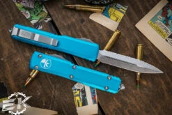 Microtech Ultratech OTF Automatic Knife Turquoise 3.4″ Dagger Stonewash Serrated 122-12TQ