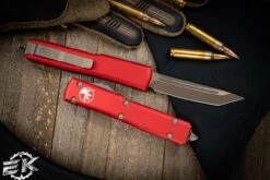 Microtech Ultratech OTF Automatic Knife Red 3.4″ Tanto Bronze Stonewash Apocalyptic 123-13APRD