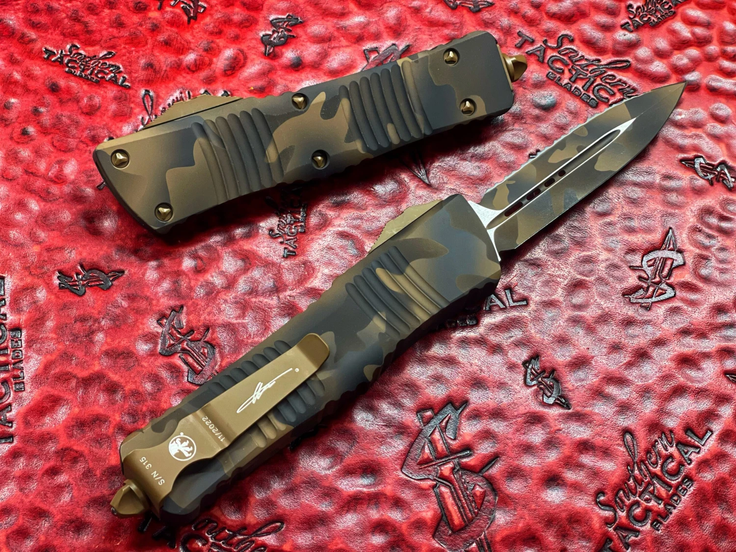 Microtech Combat Troodon Double Edge Full Serrated Coyote Camo Cerakote Signature Series