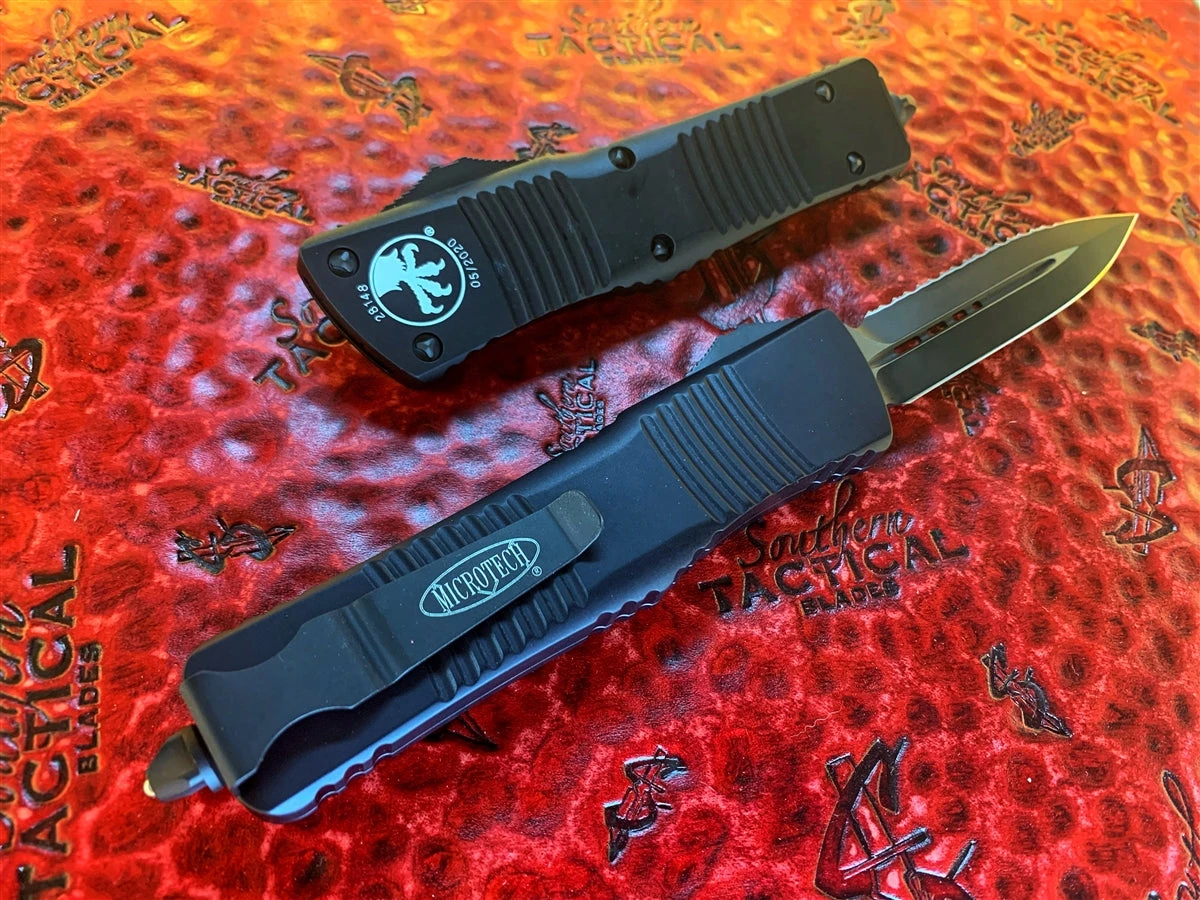 Built for utility and defensive use, the Microtech Combat Troodon Tactical is a favorite among law enforcement, military, and first responder personnel. This Microtech Combat Troodon blends tasteful design and rugged dependability with its full serrated double edge black blade, matching hardware and rugged build quality. An integrated glass breaker at the base of the knife will get you, or someone in distress, out of a bind should the need arise. The benefits of an automatic OTF make it a great choice for both duty and everyday carry users alike.