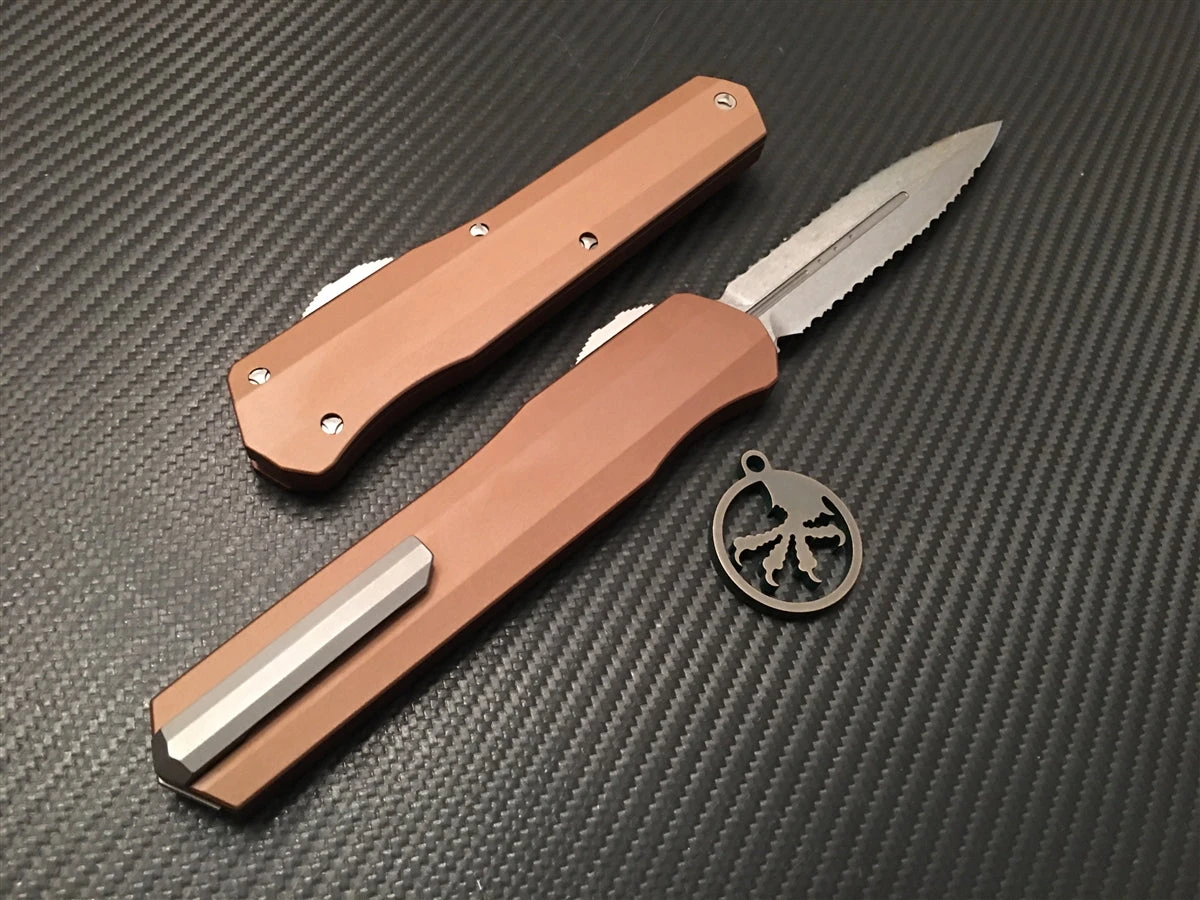 Microtech Cypher Double Edge Stonewashed Double Full Serrated Tan 242S-D12TA
