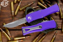 Microtech Hera Purple OTF Automatic Knife 3″ Drop Point Stonewash Serrated 703-11PU