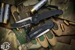 - Blade: 3.4″ Black/Satin, Part-Serrated