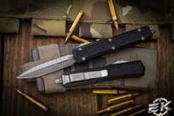 Microtech Makora OTF Automatic Knife Black (Nickel Boron Internals) 3.25″ Stonewash Dagger Serrated 206-12S