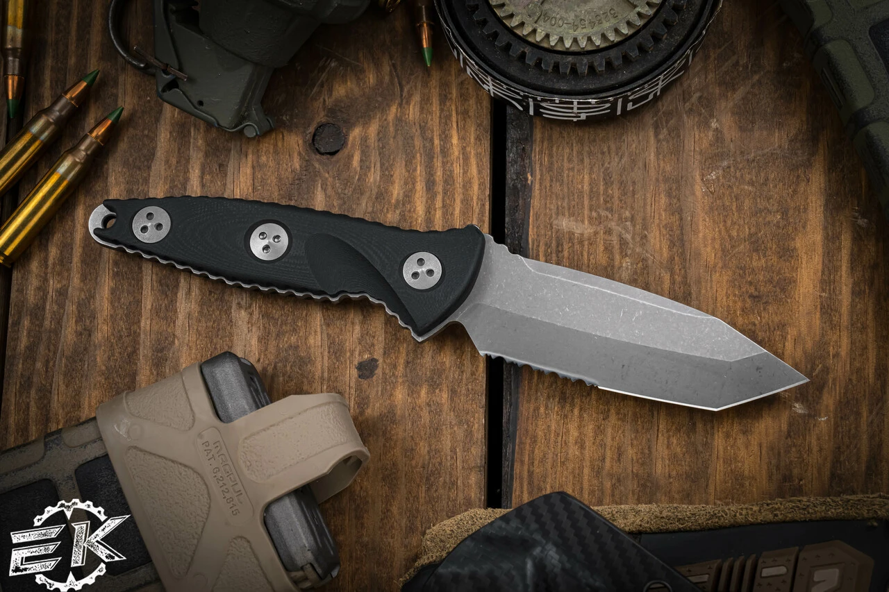 Microtech Socom Alpha Mini Fixed Blade Knife Black G10 3.75″ Tanto Stonewash Apocalyptic Serrated 114M-11AP