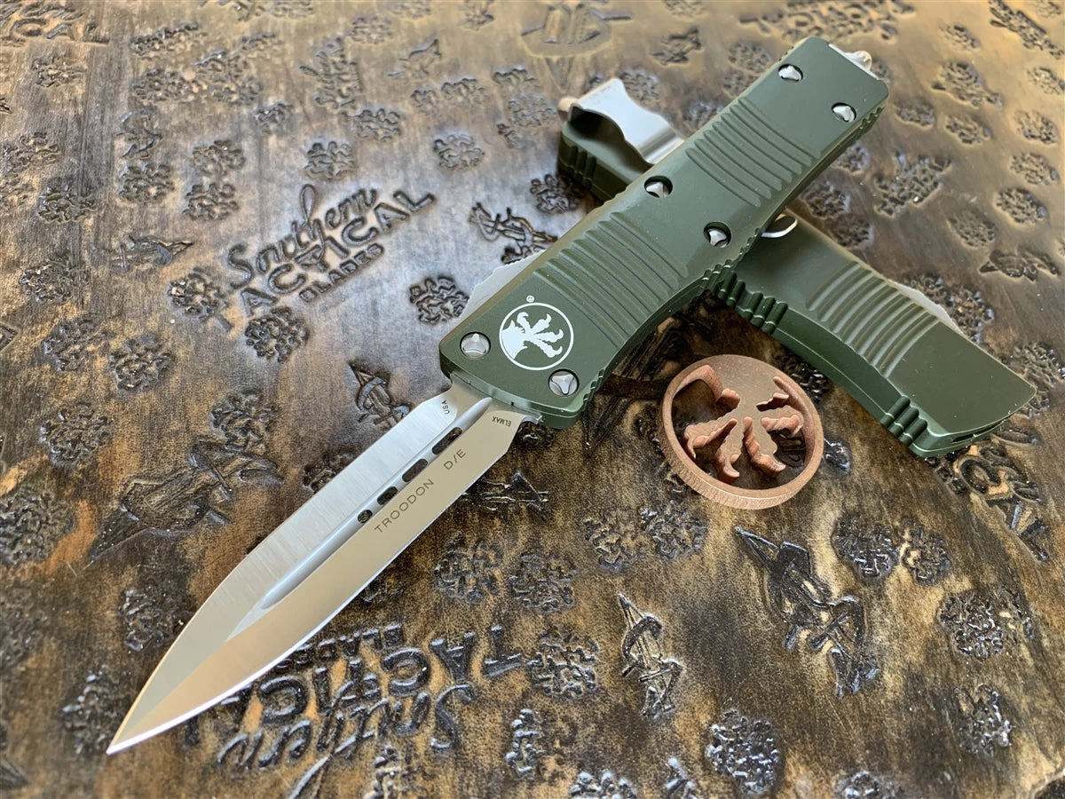 Microtech Troodon Double Edge Satin Standard OD Green 138-4OD