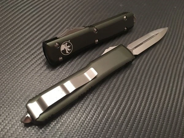 Microtech Ultratech Double Edge Part Serrated Black OD Green