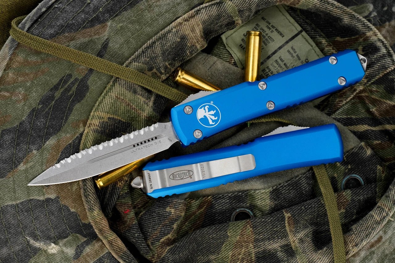 Microtech Ultratech Double Edge Part Serrated Black OD Green