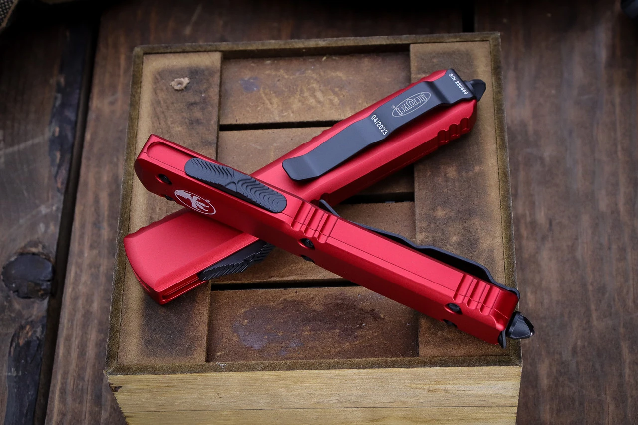 As the flagship model of the Microtech O.T.F. lineup, the Ultratech sets the standard for Out-The-Front technology. Proprietary design allows the firing spring to be at rest in both the open and closed positions, drastically reducing wear on the internal firing mechanisms. The contoured chassis handle provides a lighter and more ergonomic feel and comes in a smooth, flat finish.