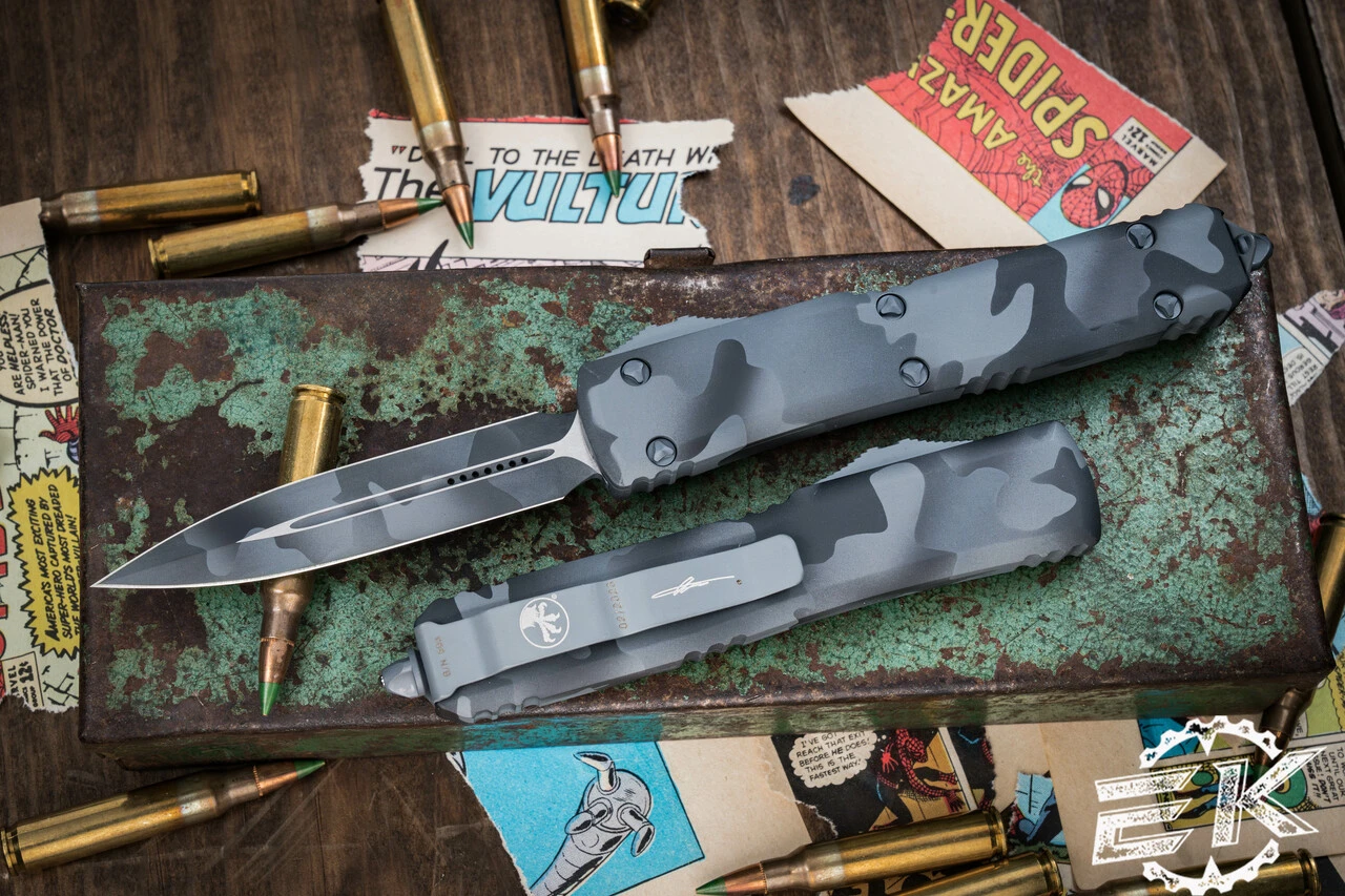 Microtech Ultratech OTF Automatic Knife Urban Camo 3.4″ Dagger Camo Cerakote 122-1UCS