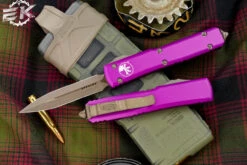 The Microtech Ultratech is making noise in the knife world. The dual action spring loaded OTF that started it all is the smoothest operating out the front knife you will find. It features a 3.4″ Double Edge Dagger blade in a Bronze finish. The Ultratech has a 5″ anodized 6061-T6 aluminum handle with bronze finished pocket clip, glass breaker and hardware.