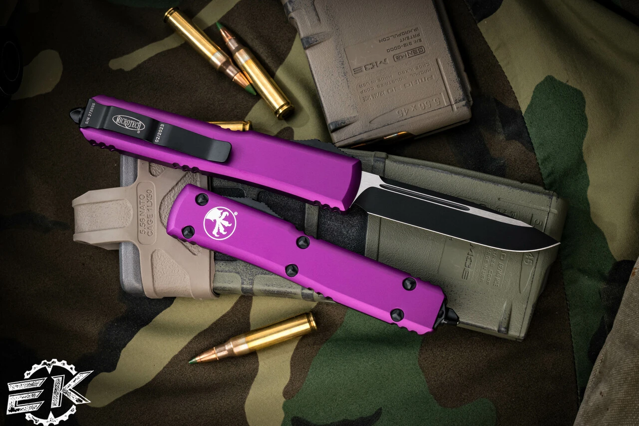 As the flagship model of Microtech’s OTF lineup, the Ultratech® sets the standard for OTF technology. Proprietary technology allows the firing spring to be at rest in both the open and closed positions, drastically reducing wear on the internal firing mechanisms. The contoured chassis handle provides a lighter and more ergonomic feel and comes in a smooth, flat finish.The Microtech Ultratech is the first ever OTF (out the front) automatic knife produced by Microtech Knives. It features a 3.4″ blade with various blade finishes and styles. The Ultratech features a 5″ anodized 6061-T6 aluminum smooth handle with pocket clip, glass breaker and stainless steel hardware. Dual action thumb slide for automatic deployment and retraction.