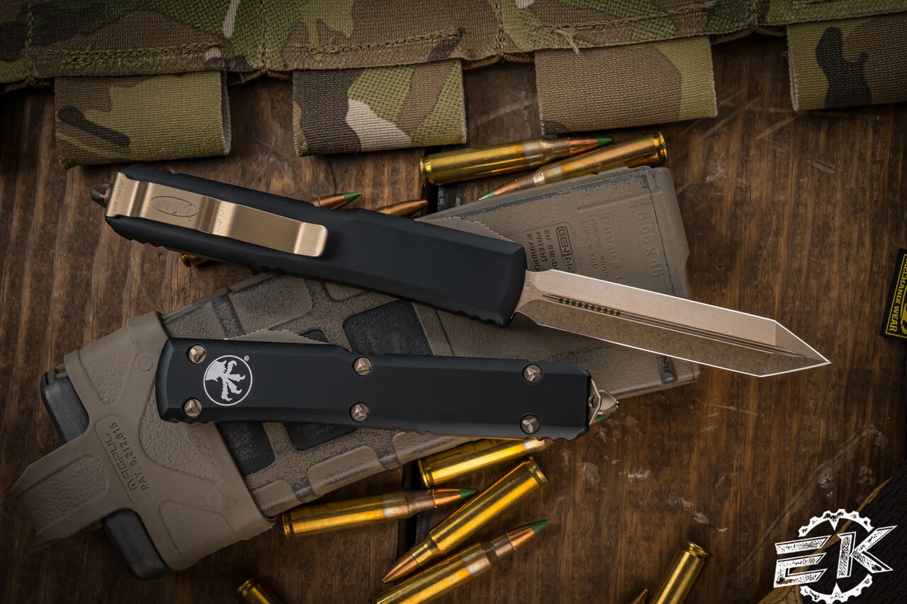 Microtech Ultratech Spartan OTF Automatic Knife Black 3.4″ Bronze 223-13