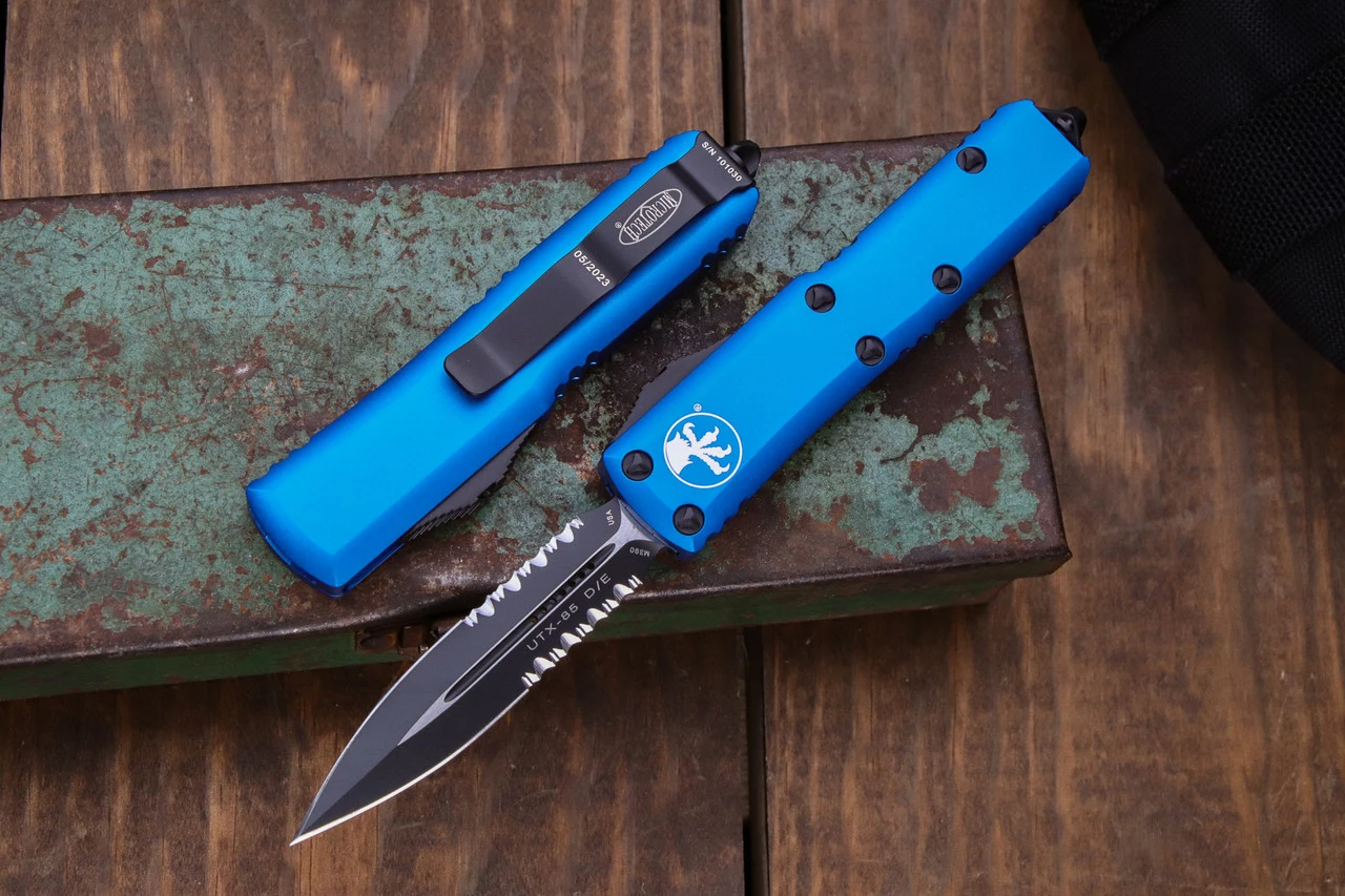 The Microtech UTX-85 out the front knife is a compact pocket friendly auto with functional greatness packaged into Microtech’s stellar design perfected by company owner Anthony Marfione. The UTX 85 comes with a high quality steel blade and stainless steel hardware including screws, pocket clip and thumb slide for deployment and retraction.