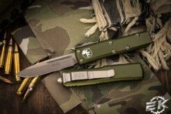 The Microtech UTX-85 out the front knife is a compact pocket friendly auto with functional greatness packaged into Microtech’s stellar design perfected by company owner Anthony Marfione. The UTX 85 comes with a very high quality steel blade and stainless steel hardware including screws, pocket clip and thumb slide for deployment and retraction.