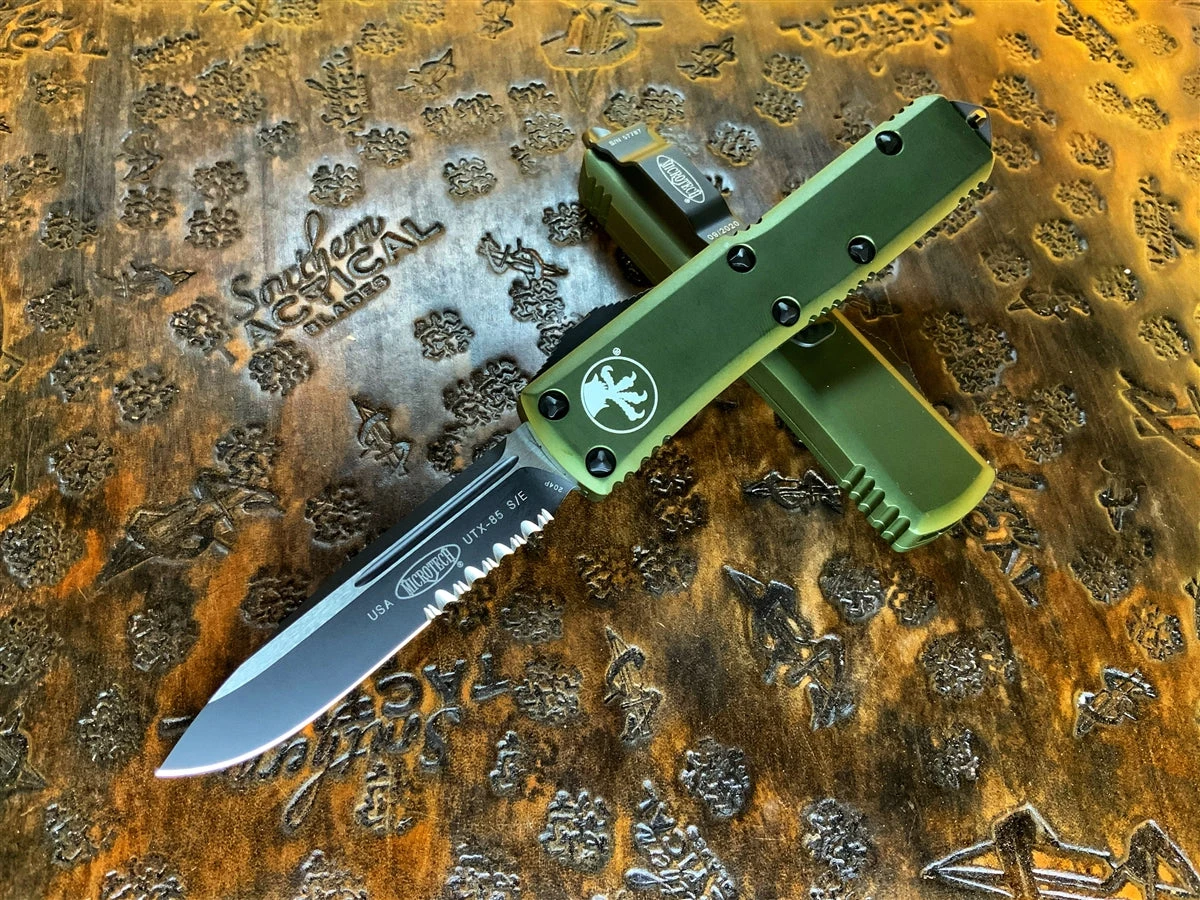 Microtech UTX-85 Single Edge Part Serrated OD Green