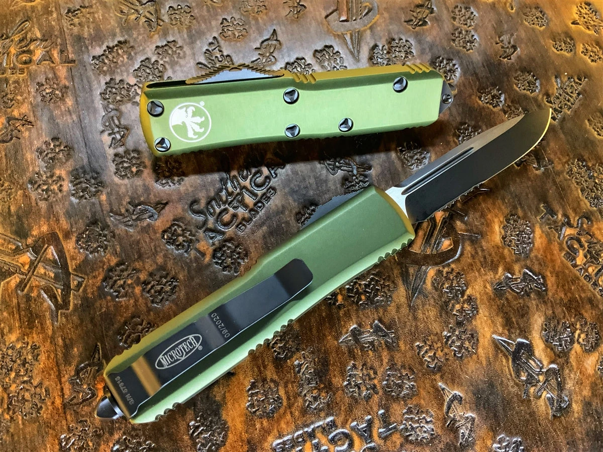 Microtech UTX85 Single Edge Part Serrated OD Green 231-2OD