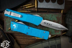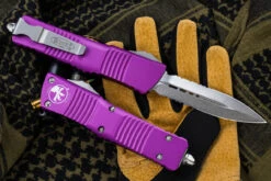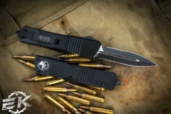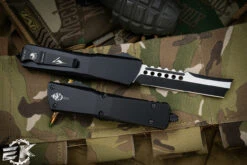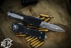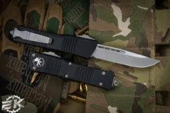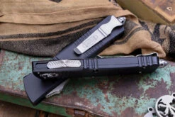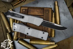 Microtech Combat Troodon OTF Automatic Knife Gray Aluminum 3.8″ Dagger Black Serrated 142-2TG