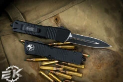 Microtech Combat Troodon Distressed Black OTF Automatic Knife 3.8″ Stonewash Dagger 142-10DBK
