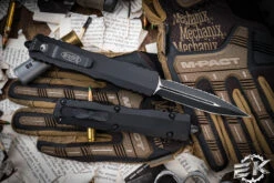 Microtech Dirac Delta OTF Automatic Knife 3.75″ Dagger Stonewash Apocalyptic Serrated 227-11AP