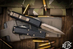 Microtech Mini Troodon OTF Automatic Cali Legal Knife 1.9″ Dagger Serrated Stonewash 238-12