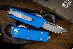 Microtech Troodon Mini Blue OTF Automatic Knife 1.9″ Tanto Apocalyptic Stonewash 240-10APBL