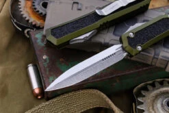Microtech UTX-85 II Stepside OTF Automatic Knife 3″ Dagger Stonewash Apocalyptic 232II-10APS