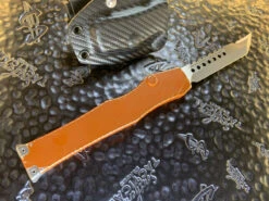 Microtech HALO VI Hellhound Tanto Apocalyptic Standard Distressed Orange Signature Series